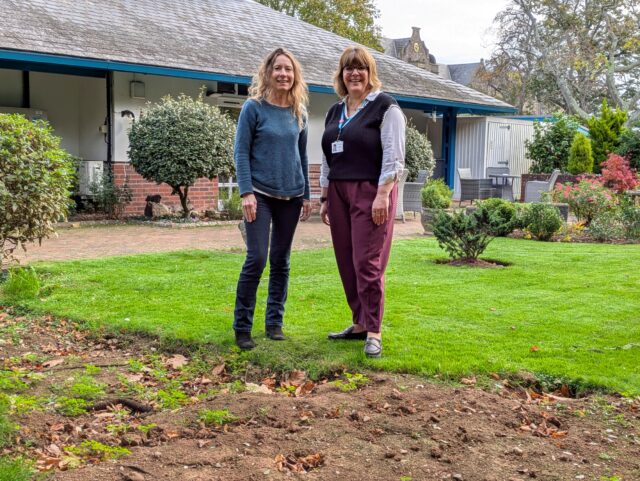 I visited Searle House with Steff Dennis from HCT to see the areas and take photos for the winner announcement. I’ve been to Searle House before but never seen the garden. It’s absolutely lovely, a beautiful, peaceful spot for patients and their visitors to enjoy. And it will look even lovelier when the new turf is in place.